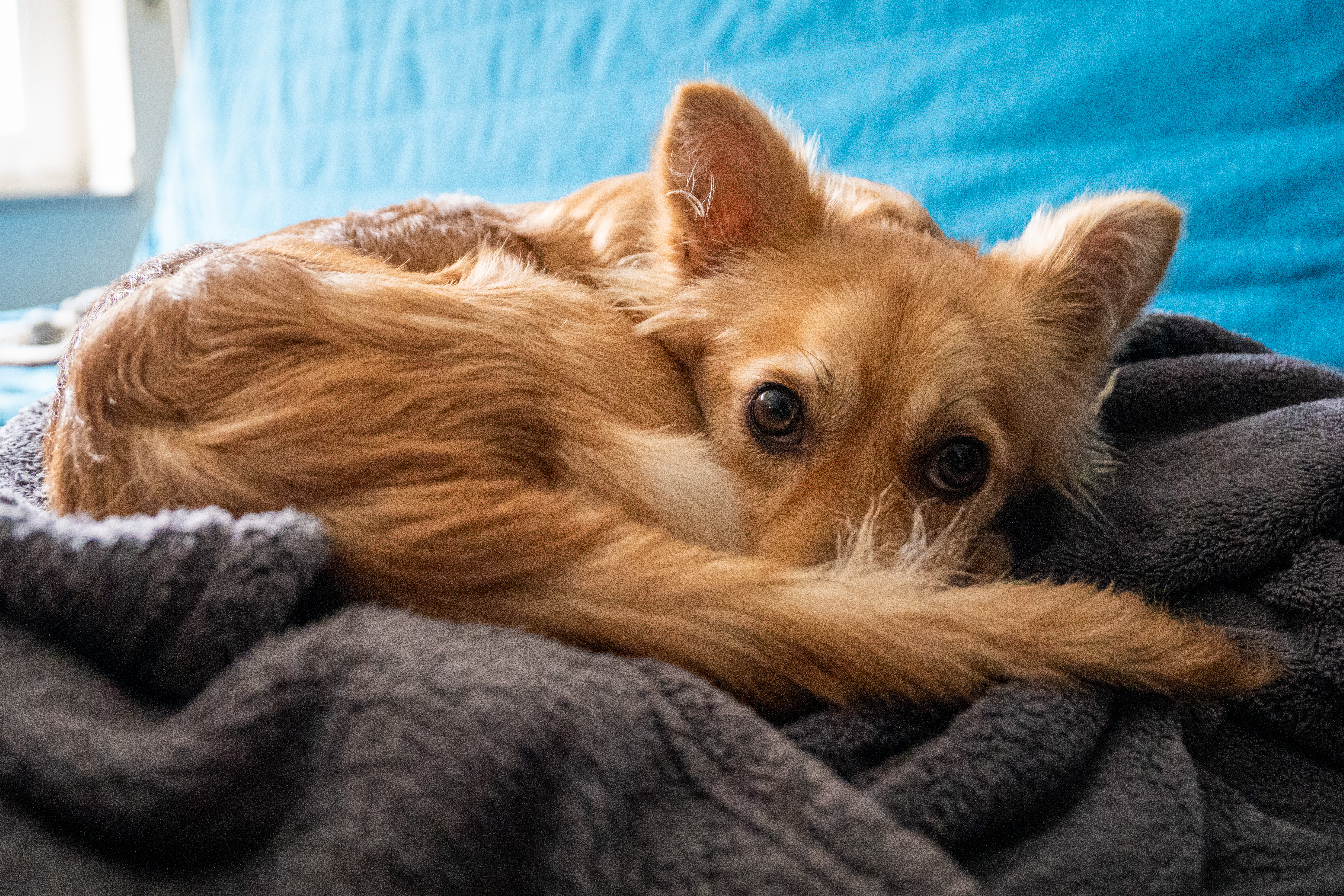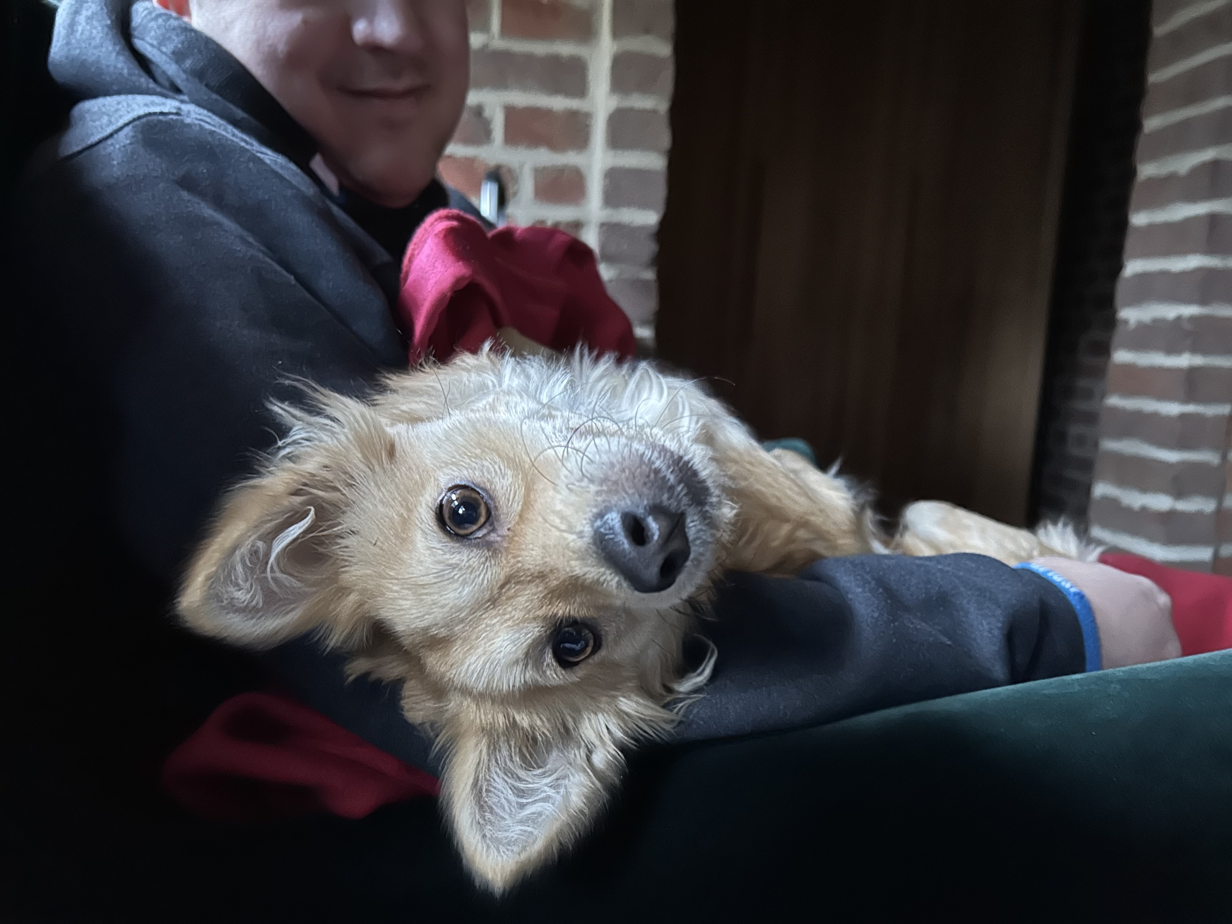Eine besondere Herausforderung stellte unsere Wohnsituation dar: Wir halten uns tagsüber oft im Obergeschoss auf, doch die Treppe dorthin ist nicht hundegerecht. Da Toby natürlich gerne bei seinem Rudel ist, tragen wir ihn mehrmals täglich hoch und runter. Das ist kein Problem – er ist nicht schwer –, aber es zeigt, wie sehr ein Hund den Alltag verändert.